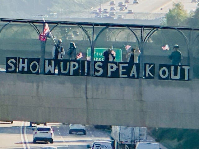 La Verne, California Bridge Brigade over the 210 Freeway (published in Robert Hubbell’s “Today’s Edition” Substack newsletter, March 1, 2026).